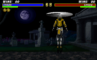 Another easy one. Have smoke turn invisible, then have the winner perform an air throw to kill him. Either Kano, Smoke or Cyrax's air throw works. For some reason, Jax's backbreaker makes him visible.